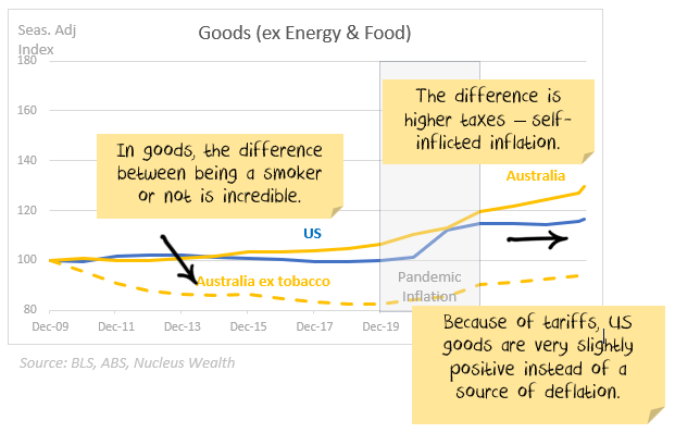 Goods, is almost different - but policy decisions are causing higher inflation in both Australia and the US: