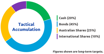 These portfolios feature "Tactical Asset Allocation", meaning the amount of Cash, Bonds and Shares in each portfolio is adjusted by Nucleus Wealth to take advantage of global economic themes and help protect the portfolio during volatile market conditions